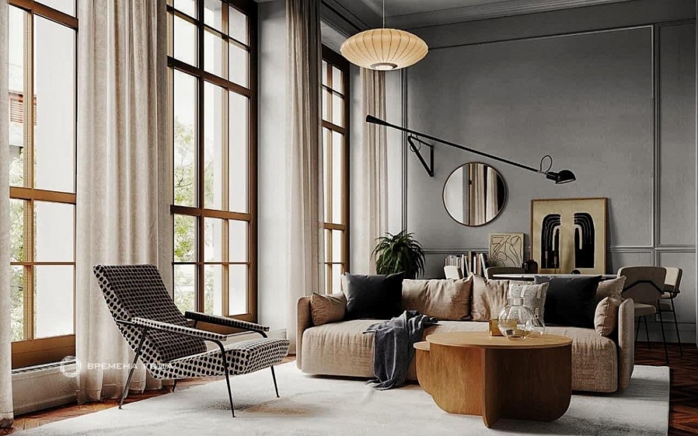 Гостиная в стиле лофт светлая