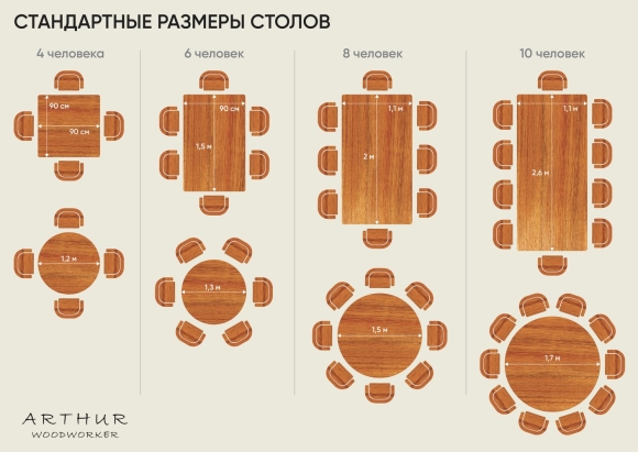 Размер круглого стола на 6 человек