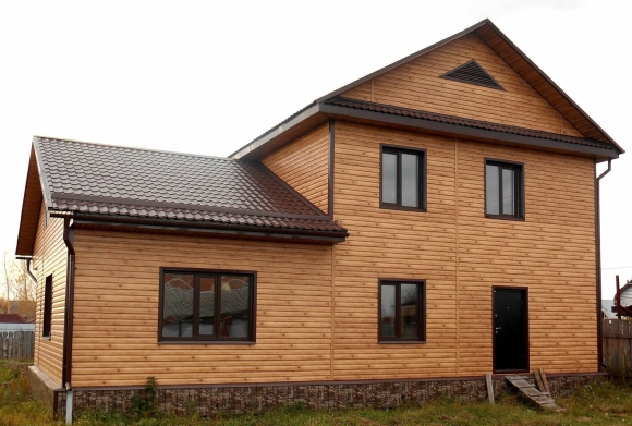 Дом обшит металлосайдингом блок Хаус