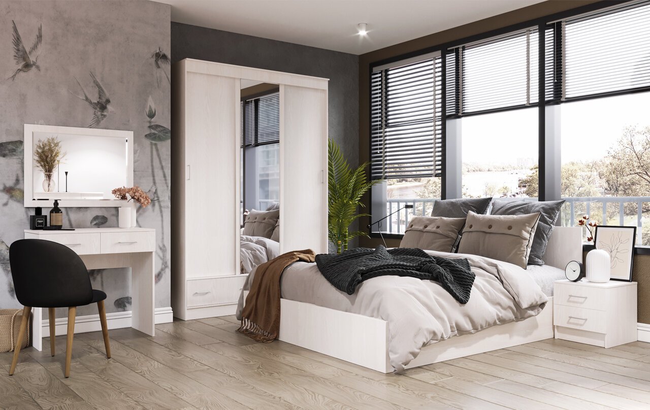 Мебель в спальне молочный дуб