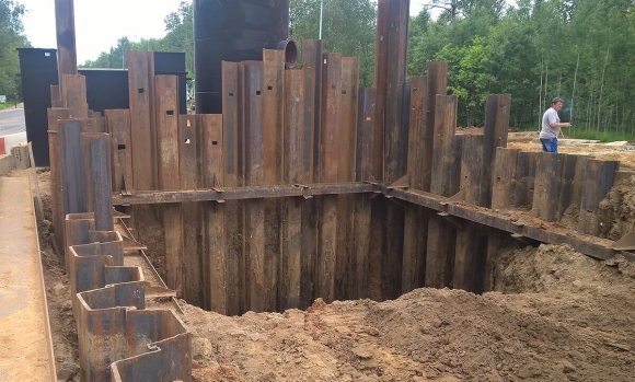 Шпунтовое ограждение траншеи для прокладки труб