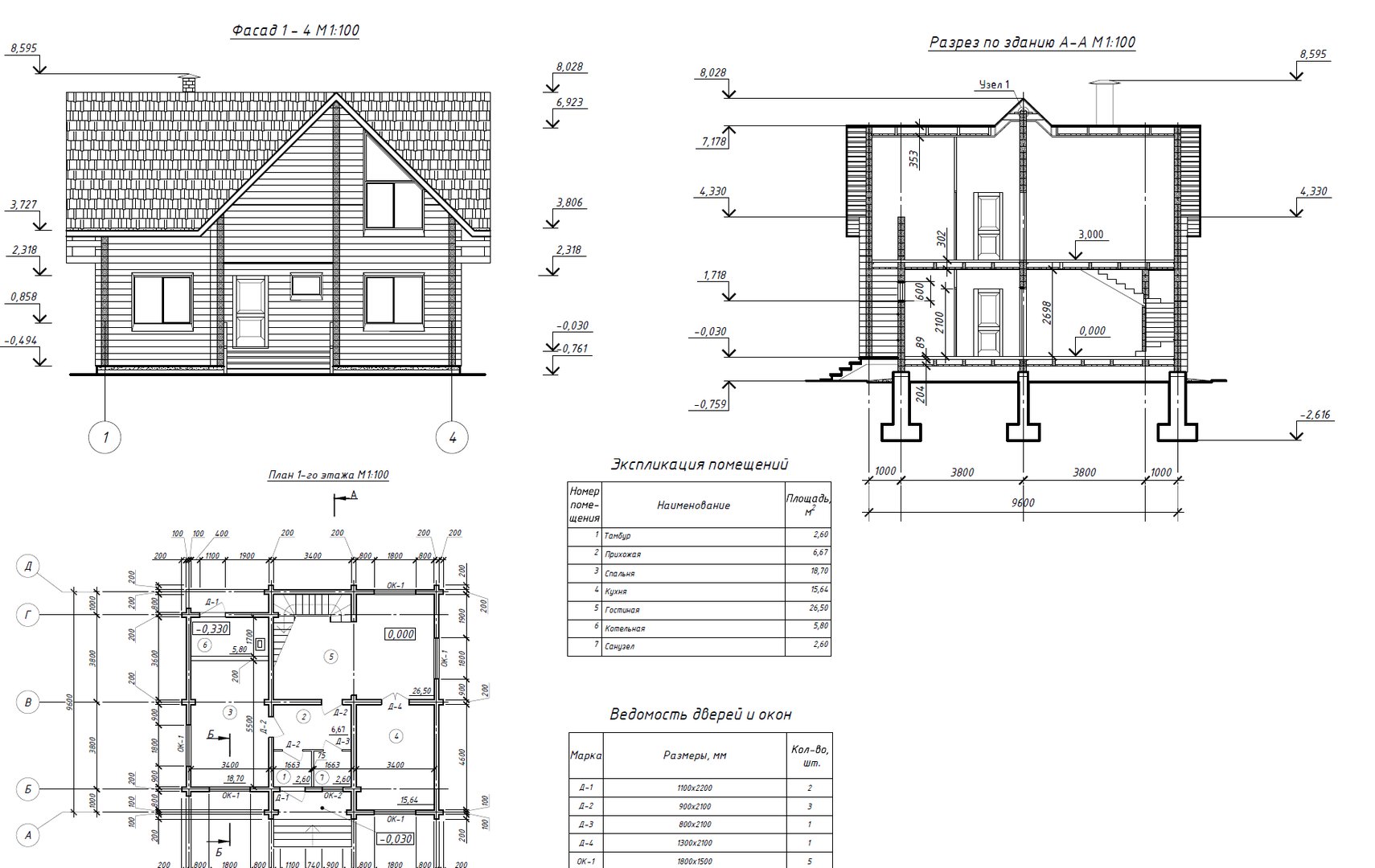 План фасад разрез чертежи коттедж
