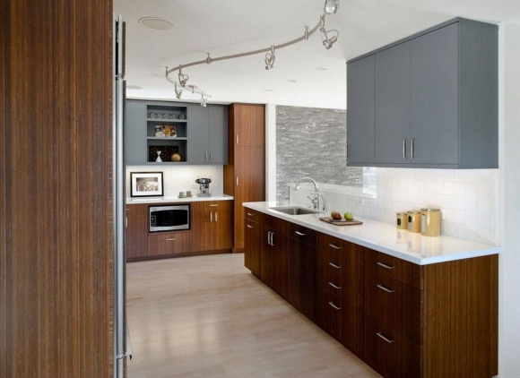 Кухня сочетание серого и дерева в интерьере