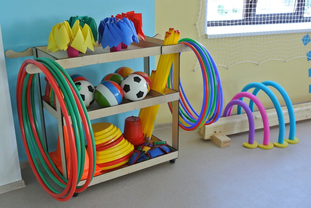 Стеллаж для хранения спортивного инвентаря в детском саду