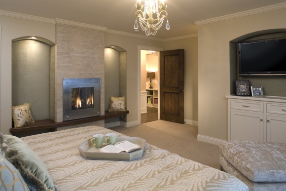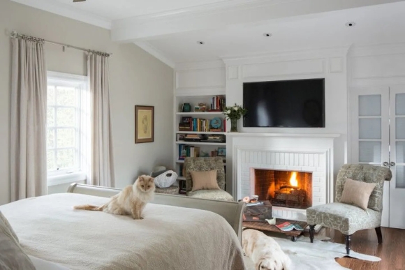 Дизайн спальни с камином и телевизором в квартире
