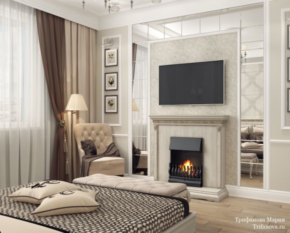 Камин в спальне квартиры