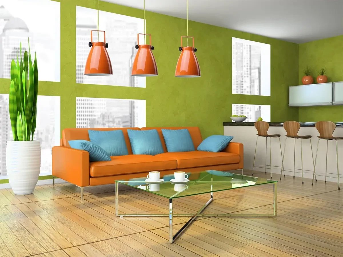 Сочетание оранжевого и зеленого в интерьере