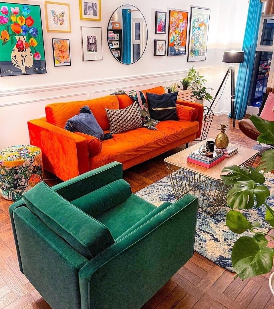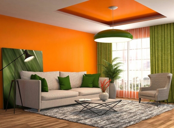 Оранжевый и зеленый в интерьере