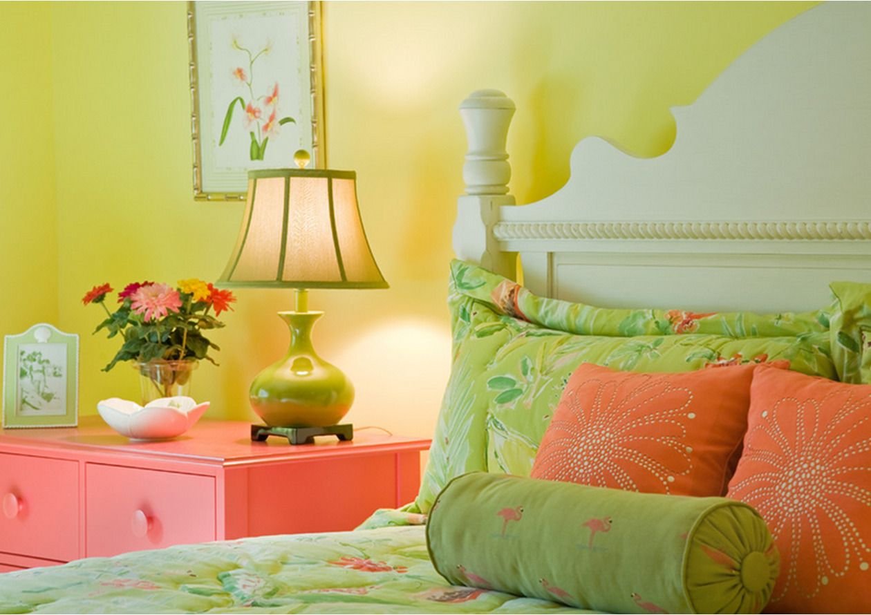 Оранжево салатовый интерьер