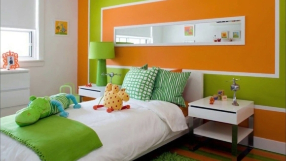 Зелено оранжевая детская комната