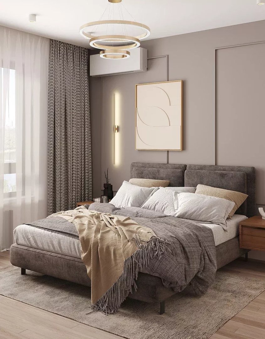 Серо коричневая спальня