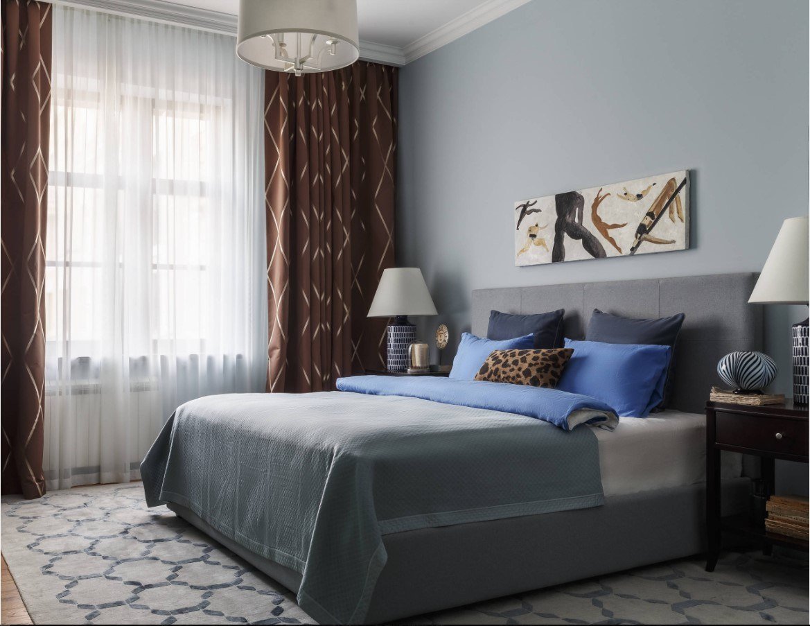 Дизайн спальни в серо коричневых тонах