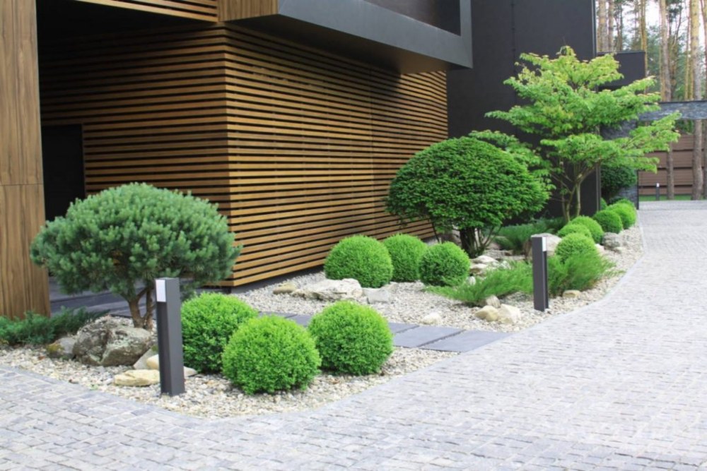 Декоративные деревья в сада в частном доме