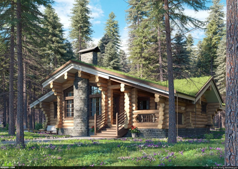 Одноэтажный дом из бревна